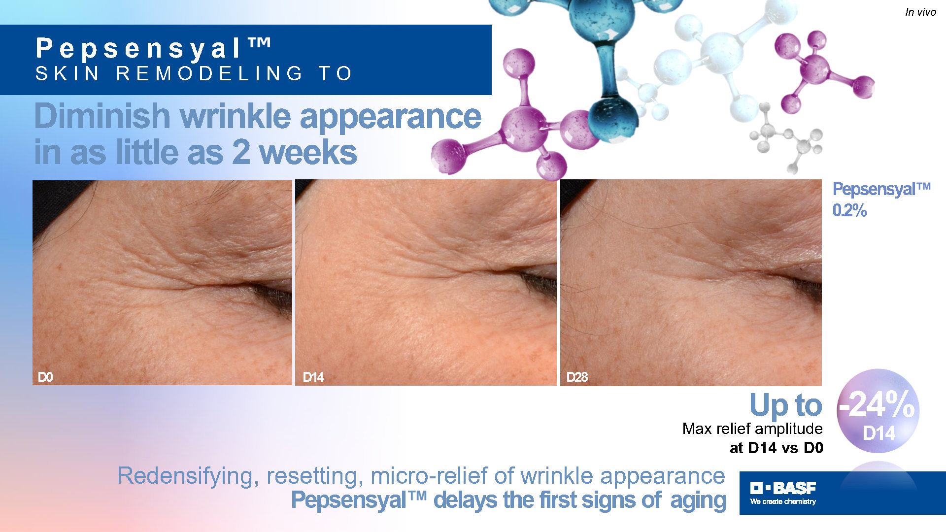 Pepsensyal BC10230 is an active ingredient that addresses the growing interest in slow-aging. Inspired by a human naturally occurring peptide and the skin’s regeneration process, Pepsensyal BC10230 is a science-backed ingredient that answers this need: It is clinically proven to reduce and delay the first visible signs of aging. Its cost-effectiveness opens the door to the broader usage of peptides in cosmetic skin care.